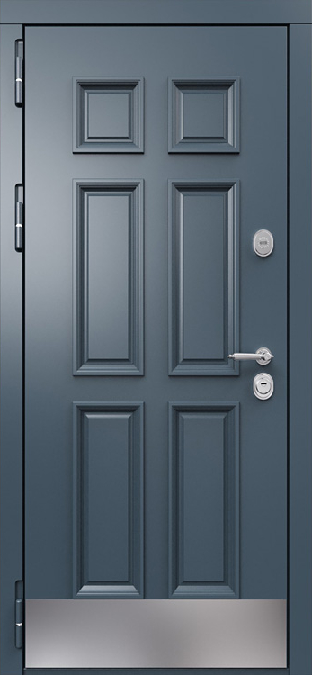 Дверь стальная МДФ эмаль №563 — это удачное сочетание надежной металлической основы и аккуратной декоративной отделки. Каркас из профильной трубы и стальной лист толщиной 2 мм обеспечивают прочность и устойчивость к взлому, а ребра жесткости повышают общий ресурс эксплуатации. Важной особенностью модели является наличие терморазрыва в коробке и полотне: конструкция эффективно препятствует промерзанию зимой, исключает появление конденсата и сохраняет тепло в помещении. Панели МДФ с ПВХ-покрытием, использованные с обеих сторон, защищены от влаги и мелких механических повреждений, благодаря чему дверь долго сохраняет привлекательный внешний вид. Два контура резинового уплотнителя дополнительно усиливают защиту от сквозняков и уличного шума. Такая дверь органично подходит для частных домов, квартир и офисов, сочетая в себе надежность стали и практичность современной отделки. Дверь стальная МДФ эмаль №563 от производителя: быстрое изготовление и монтаж в Малоярославце, индивидуальные размеры, широкий выбор материалов и фурнитуры, официальная гарантия до 10 лет.