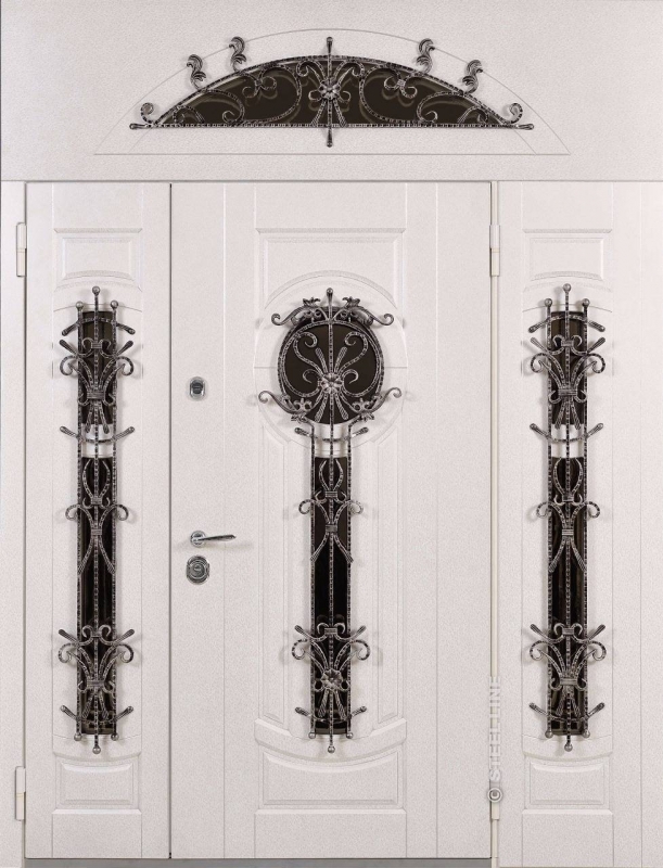 Входная дверь с кованой ручкой и фрамугой №6 представляет собой элегантное и надежное решение для тех, кто ценит не только безопасность, но и стиль. Эта модель идеально подойдет для оформления парадных входов в дома и офисы. Внешняя отделка из плиты МДФ придает двери современный и чистый вид, который сохраняется долго благодаря стойкости к внешним воздействиям. Благодаря профильной трубе с толщиной металла 2 мм и ребрам жесткости, конструкция двери гарантирует прочность и долговечность. Дополнительный элемент — кованая ручка, которая добавляет изысканности и подчеркивает высокий класс изделия. Стандартная комплектация не включает шумо- и теплоизоляцию, однако она может быть установлена по желанию. Резиновый уплотнитель с двумя контурами обеспечит хорошую герметичность, защищая от ветра и пыли. Подходит для установки как в частных домах, так и в офисах, привлекая внимание своим необычным и стильным дизайном. Входная дверь с кованой ручкой и фрамугой №6 от производителя: быстрое изготовление и монтаж в Малоярославце, индивидуальные размеры, широкий выбор материалов и фурнитуры, официальная гарантия до 10 лет.