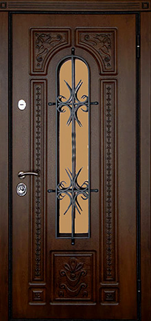 Входная дверь с ковкой и стеклом в частный дом №14 создана для тех, кто ценит практичность и эстетику в равной степени. Каркас из профильной трубы и стальной лист толщиной 2 мм отвечают за надежность и устойчивость, а декоративное остекление с коваными элементами делает вход в дом более светлым и выразительным. Отделка панелями МДФ с ПВХ-покрытием защищает поверхность от влаги, перепадов температуры и мелких повреждений, позволяя двери сохранять презентабельный вид долгие годы. Два контура уплотнения обеспечивают защиту от сквозняков, а при необходимости можно дополнить конструкцию дополнительной шумо- и теплоизоляцией. Входная дверь с ковкой и стеклом в частный дом №14 может изготавливаться в любых размерах и с любым направлением открывания, а также комплектоваться современными замками или дополнительными декоративными элементами, подчеркивающими индивидуальность фасада. Входная дверь с ковкой и стеклом в частный дом №14 от производителя: быстрое изготовление и монтаж в Малоярославце, индивидуальные размеры, широкий выбор материалов и фурнитуры, официальная гарантия до 10 лет.