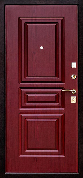 Строгая, практичная и надёжная конструкция делает эту модель удобной для установки в квартире или офисе, где важны защита и долговечность. Каркас и полотно выполнены из профильной трубы, усилены стальным листом толщиной 2 мм и ребрами жёсткости, что обеспечивает устойчивость к нагрузкам и попыткам взлома. Снаружи дверь облицована ламинированными панелями, сохраняющими аккуратный вид даже при интенсивной эксплуатации, внутри — МДФ со шпоном, создающим ощущение уюта и солидности. Два контура уплотнителей защищают от сквозняков, при желании можно добавить шумо- и теплоизоляцию для большего комфорта. Дверь стальная с отделкой ламинат №7 укомплектована двумя надёжными замками российского производства, а при необходимости их легко заменить на более современные механические или электронные системы. Дверь стальная с отделкой ламинат №7 от производителя: быстрое изготовление и монтаж в Малоярославце, индивидуальные размеры, широкий выбор материалов и фурнитуры, официальная гарантия до 10 лет.