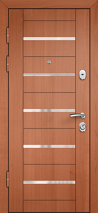 Надежность в сочетании с эстетикой делает такую модель привлекательной для самых разных помещений — от квартиры до офиса или частного дома. Прочный стальной каркас, усиленный ребрами жесткости и листом металла толщиной 2 мм, обеспечивает устойчивость к нагрузкам, а два замка российского производства отвечают за безопасность. Снаружи и внутри полотно облицовано панелями МДФ с покрытием ПВХ, которое стойко переносит царапины, влажность и долго сохраняет первоначальный вид. Красивая входная дверь в квартиру №9 доступна с выбором направления и типа открывания, что упрощает установку в любых условиях. Два контура резинового уплотнителя защищают от сквозняков, а при необходимости модель можно оснастить дополнительной изоляцией, зеркалом или даже электронным замком. Это решение для тех, кто ищет практичность и современный внешний облик в одном изделии. Красивая входная дверь в квартиру №9 от производителя: быстрое изготовление и монтаж в Малоярославце, индивидуальные размеры, широкий выбор материалов и фурнитуры, официальная гарантия до 10 лет.