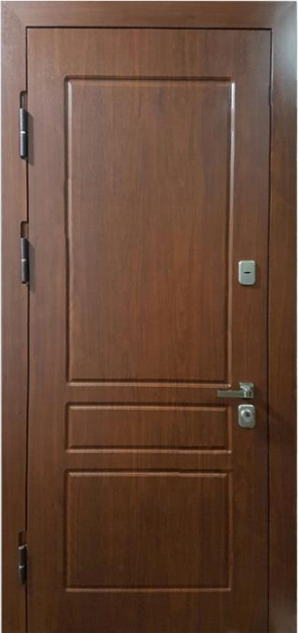 Дверь входная уличная с терморазрывом №41 – это надежная и стильная модель, идеально подходящая для частных домов и коттеджей. Конструкция двери с терморазрывом в коробке и полотне эффективно защищает от холодного воздуха и влаги, обеспечивая стабильный микроклимат внутри помещения. Внешняя и внутренняя отделка из панелей МДФ с ПВХ покрытием не только привлекает внимание своим современным дизайном, но и обеспечивает отличную стойкость к механическим повреждениям, а также долговечность. Металлическое полотно толщиной 1,5 мм с ребрами жесткости из профильных труб гарантирует высокую прочность, а также надежную защиту от взлома. Шумо- и теплоизоляция из пенопласта повышенной плотности создают дополнительный комфорт. Дверь оснащена высококачественными замками Kale Kilit с тремя ригелями, что обеспечивает высокий уровень безопасности. Дверь входная уличная с терморазрывом №41 от производителя: быстрое изготовление и монтаж в Малоярославце, индивидуальные размеры, широкий выбор материалов и фурнитуры, официальная гарантия до 10 лет.