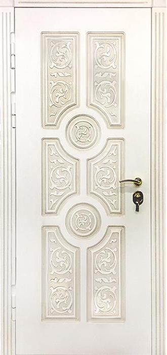 Дверь уличная с терморазрывом №49 — это надежное решение для частных домов и коттеджей, которое обеспечит комфорт и защиту от внешних факторов. С терморазрывом в коробке и полотне, эта дверь исключает проникновение холода, сохраняя тепло в доме и предотвращая появление конденсата. Внешняя и внутренняя отделка выполнена с использованием накладки МДФ, что придает двери привлекательный вид и долговечность, стойкость к механическим повреждениям и атмосферным воздействиям. Ковка, как элемент декора, добавляет изысканности и подчеркивает индивидуальность. Металлическая конструкция с толщиной полотна 1,5 мм и каркасом из профильных труб гарантирует прочность и устойчивость. Уплотнение с тремя контурами магнитного герметика и высокая шумо- и теплоизоляция на основе пенопласта делают дверь идеальной для использования в уличных условиях. Возможность замены замков и добавления стеклопакетов или кованых элементов позволяет индивидуализировать дверное решение под любые потребности. Дверь уличная с терморазрывом №49 от производителя: быстрое изготовление и монтаж в Малоярославце, индивидуальные размеры, широкий выбор материалов и фурнитуры, официальная гарантия до 10 лет.