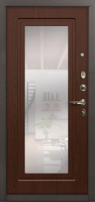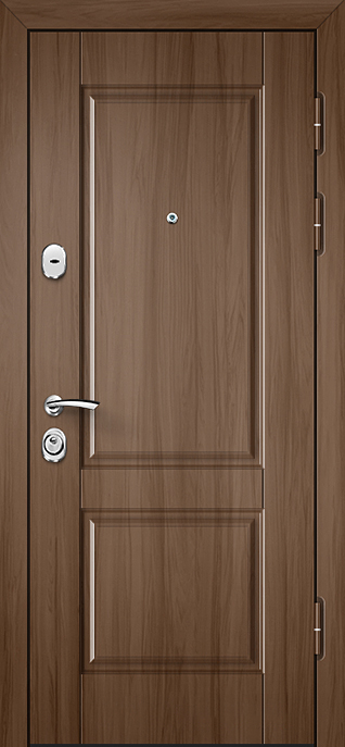 Входная дверь с зеркальными вставками №56 сочетает надежность металлической конструкции и удобство функционального декора. Зеркало не только украшает интерьер, но и делает помещение визуально просторнее, что особенно ценно для квартир и офисов. Для частного дома такая дверь добавляет практичности — всегда можно взглянуть на отражение, выходя на улицу. Отделка выполнена из панелей МДФ с ПВХ-покрытием, устойчивым к царапинам и мелким повреждениям, что обеспечивает долговечность и сохранение первоначального вида. Каркас собран из профильной трубы, усилен рёбрами жёсткости и металлическим листом толщиной 2 мм, благодаря чему дверь выдерживает серьёзные нагрузки и обеспечивает защиту от взлома. Два контура уплотнения препятствуют проникновению сквозняков и пыли, а резиновый уплотнитель сохраняет плотное прилегание полотна. Замковая система включает надежные российские механизмы Просам и Мосрентген, которые отличаются стабильной работой и высоким ресурсом. Дверь №56 — это прочность, удобство и современный дизайн в одной конструкции. Входная дверь с зеркальными вставками №56 от производителя: быстрое изготовление и монтаж в Малоярославце, индивидуальные размеры, широкий выбор материалов и фурнитуры, официальная гарантия до 10 лет.
