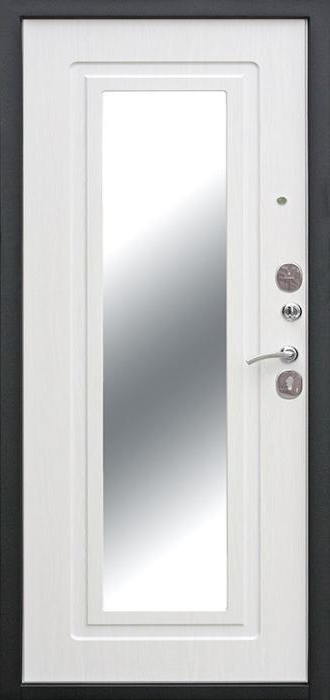 Железная дверь входная в квартиру с зеркалом №68 сочетает в себе надежность металла и практичность продуманного дизайна. Снаружи она покрыта молотковым напылением, известным своей устойчивостью к сколам и царапинам, а также способностью долго сохранять аккуратный внешний вид даже при активной эксплуатации. Внутренняя сторона оформлена накладкой из МДФ, что делает её гармоничным элементом интерьера и добавляет уюта. Встроенное зеркало не только удобно в повседневной жизни, но и визуально расширяет пространство прихожей. Основа конструкции выполнена из профильных труб с листом стали толщиной 2 мм, что гарантирует прочность и долговечность. Два контура уплотнения защищают от сквозняков и уличного шума, а наличие терморазрыва в коробке и полотне препятствует промерзанию в холодное время года. Такая дверь станет надежным и функциональным решением для квартиры, офиса или загородного дома. Железная дверь входная в квартиру с зеркалом №68 от производителя: быстрое изготовление и монтаж в Малоярославце, индивидуальные размеры, широкий выбор материалов и фурнитуры, официальная гарантия до 10 лет.