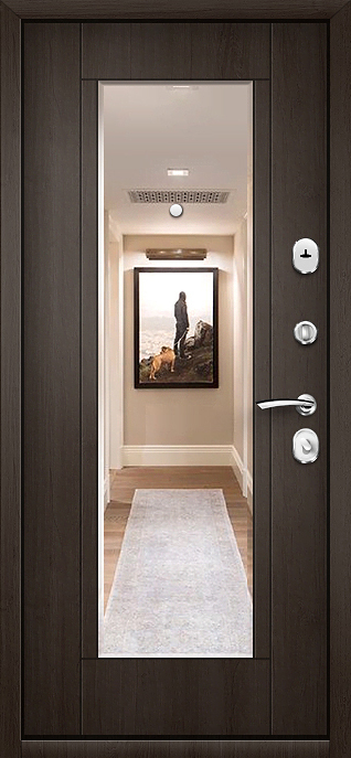 Входная дверь с зеркалом внутри №71 удачно сочетает практичность и надежность, оставаясь при этом стильным элементом интерьера. Она подходит для квартиры, офиса или частного дома, создавая удобство в быту и подчеркивая статус владельца. Внешняя сторона покрыта порошковой окраской, устойчивой к царапинам и перепадам температуры, что гарантирует долговечность и сохранение привлекательного вида. Внутри установлена накладка из МДФ, которая придает поверхности уют и делает её гармоничной частью интерьера. Зеркало на внутренней стороне экономит пространство прихожей и добавляет ей визуальной глубины. Каркас из профильной трубы с листом стали толщиной 2 мм и ребрами жесткости обеспечивает прочность и устойчивость ко взлому. Два контура уплотнителей создают дополнительную защиту от сквозняков и пыли, а терморазрыв в коробке и полотне предотвращает промерзание зимой. Для безопасности предусмотрены два замка российского производства с ригельными системами, при желании возможна замена на замки премиальных марок или установка умных электронных решений. Дверь входная с зеркалом внутри №71 от производителя: быстрое изготовление и монтаж в Малоярославце, индивидуальные размеры, широкий выбор материалов и фурнитуры, официальная гарантия до 10 лет.