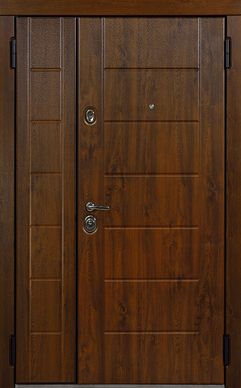 Эта двухстворчатая входная дверь с отделкой под темный орех №11 идеально сочетается с классическими и современными интерьерами. Накладки из МДФ, как снаружи, так и внутри, обеспечивают долговечность и устойчивость к механическим повреждениям, сохраняя привлекательный вид в течение долгого времени. Покрытие в цвете темного ореха придает двери элегантность и стиль, а также защищает от внешних воздействий. Двухстворчатая входная дверь с отделкой под темный орех №11 от производителя: быстрое изготовление и монтаж в Малоярославце, индивидуальные размеры, широкий выбор материалов и фурнитуры, официальная гарантия до 10 лет.