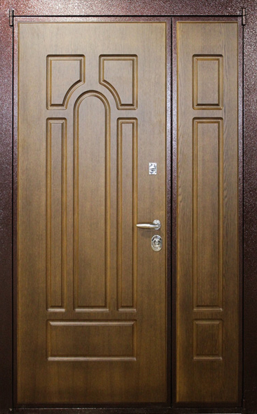 Входная полуторная дверь с боковыми вставками для коттеджа №21 сочетает в себе надежность и стильный внешний вид, идеально подходя для установки в частных домах. Оборудованная прочной конструкцией из профильных труб с металлическим листом толщиной 2 мм, эта дверь обладает высокой устойчивостью к внешним воздействиям и механическим повреждениям. Внешняя и внутренняя отделка выполнены из МДФ, что придает двери аккуратный и элегантный вид, а также стойкость к царапинам и вмятинам. Входная полуторная дверь с боковыми вставками для коттеджа №21 от производителя: быстрое изготовление и монтаж в Малоярославце, индивидуальные размеры, широкий выбор материалов и фурнитуры, официальная гарантия до 10 лет.