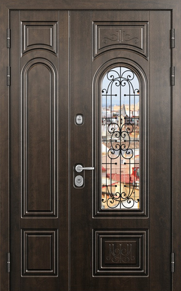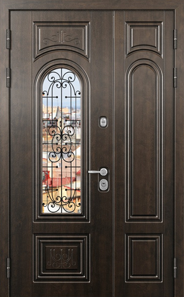 Двупольная стальная дверь со стеклопакетом и кованым узором №24 станет отличным выбором для тех, кто ценит не только безопасность, но и стиль. Внешняя и внутренняя отделка выполнены из МДФ, что придает двери элегантный и современный вид, а также обеспечивает высокую устойчивость к механическим повреждениям и износу. Стеклопакет и кованые элементы добавляют изысканности и уникальности, при этом сохраняя прочность конструкции. Двупольная стальная дверь со стеклопакетом и кованым узором №24 от производителя: быстрое изготовление и монтаж в Малоярославце, индивидуальные размеры, широкий выбор материалов и фурнитуры, официальная гарантия до 10 лет.