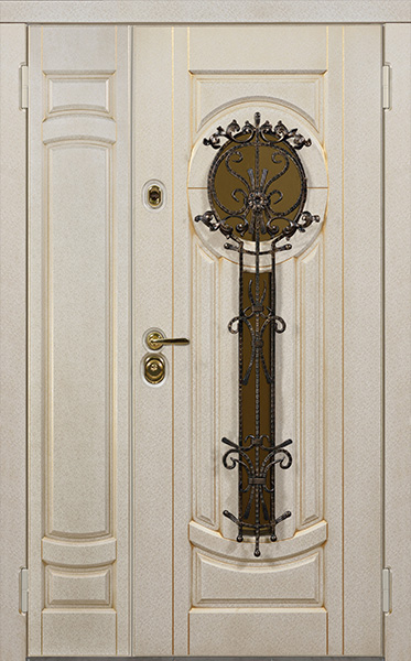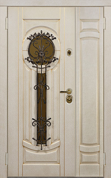 Двухстворчатая парадная дверь с ковкой и стеклом белая №30 — это сочетание красоты и надёжности. Конструкция из профильной трубы 50х25 мм и металлического листа толщиной 2 мм обеспечивает долговечность и стойкость к внешним воздействиям. Элементы ковки придают двери изысканный вид, а стеклопакет позволяет создать атмосферу лёгкости и прозрачности. Внешняя и внутренняя отделка выполнены из плиты МДФ, что делает дверь не только привлекательной, но и устойчивой к механическим повреждениям. Для дополнительной герметичности используются уплотнители с двумя контурами, а блокираторы обеспечат безопасность. Вариативность размеров и возможность добавления дополнительных опций, таких как шумо- и теплоизоляция, делают эту модель универсальной для установки в любом интерьере. Двухстворчатая парадная дверь с ковкой и стеклом белая №30 от производителя: быстрое изготовление и монтаж в Малоярославце, индивидуальные размеры, широкий выбор материалов и фурнитуры, официальная гарантия до 10 лет.