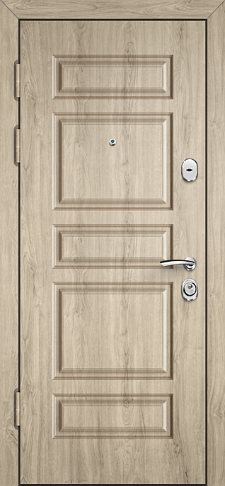 Входная дверь с ручками и замками высокого класса защиты №36 станет надежным выбором для вашего частного дома, квартиры или офиса. Конструкция из профильной трубы 50х25 мм и листа металла толщиной 2 мм обеспечивает высокую прочность и стойкость к внешним воздействиям. Ребра жесткости из труб 40х25 мм усиливают конструкцию, делая дверь устойчивой к деформации. Внешняя отделка с порошковой окраской не только придает дверям элегантный вид, но и обеспечивает стойкость к механическим повреждениям и атмосферным воздействиям. Внутренняя отделка из плиты МДФ дарит тепло и уют. Резиновый уплотнитель с двумя контурами гарантирует отличную герметичность. Для дополнительной безопасности предусмотрены блокираторы и замки высокого класса защиты. Благодаря терморазрыву в коробке и полотне, дверь эффективно защищает от перепадов температуры, обеспечивая комфорт в помещении. Входная дверь с ручками и замками высокого класса защиты №36 от производителя: быстрое изготовление и монтаж в Малоярославце, индивидуальные размеры, широкий выбор материалов и фурнитуры, официальная гарантия до 10 лет.