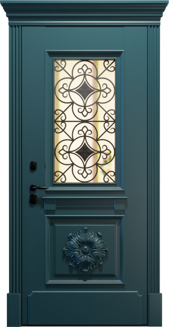 Входная дверь со стеклопакетом и патиной для загородного дома белая №29