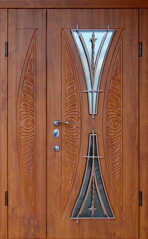 Эксклюзивная глянцевая дверь в частный дом с нестандартной фрезеровкой №24