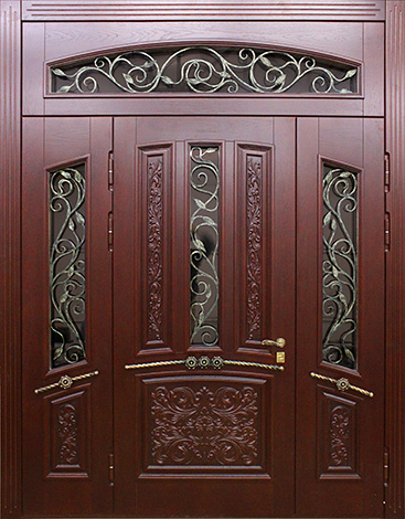 Эта модель создана для тех, кто ценит солидность и внушительный внешний вид парадного входа. Натуральный массив дуба в отделке придаёт дверному полотну статусный характер, а стеклянные вставки позволяют добавить света и лёгкости фасаду дома. При этом основа конструкции выполнена из прочной профильной трубы с использованием листа металла толщиной 2 мм и ребер жёсткости, что гарантирует надёжность и устойчивость к взлому. Двустворчатая входная дверь со стеклом №39 удобна для широких проёмов коттеджей и частных домов, обеспечивая не только безопасность, но и удобство при внесении крупногабаритной мебели. Итальянские замки Cisa сочетают в себе высокий класс защиты и плавность хода механизма, а наличие двух контуров уплотнения дополнительно защищает от сквозняков. Возможность комбинировать отделку, добавить зеркало, витраж или кованые элементы делает модель гибкой для индивидуального дизайна и подчеркивает её представительский статус. Двустворчатая входная дверь со стеклом №39 от производителя: быстрое изготовление и монтаж в Малоярославце, индивидуальные размеры, широкий выбор материалов и фурнитуры, официальная гарантия до 10 лет.