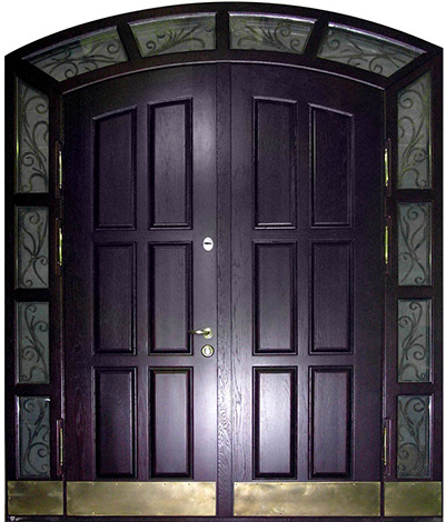 Филенчатая дверь для загородного дома с терморазрывом №32 — идеальный выбор для тех, кто ценит стиль и практичность. Элегантная отделка из натурального дерева как снаружи, так и внутри добавляет природной теплоты и уюта в ваш частный дом или коттедж. Конструкция двери с прочной профильной трубой и металлическим листом толщиной 2 мм обеспечивает отличную износостойкость и долговечность. Благодаря терморазрыву, как в коробке, так и в полотне, дверь будет защищена от воздействия температуры и влаги, что способствует сохранению её первоначального вида и надежности. Внутреннее уплотнение с двумя контурами и качественные замки обеспечивают безопасность и комфорт, сохраняя тепло внутри вашего дома. Филенчатая дверь для загородного дома с терморазрывом №32 от производителя: быстрое изготовление и монтаж в Малоярославце, индивидуальные размеры, широкий выбор материалов и фурнитуры, официальная гарантия до 10 лет.
